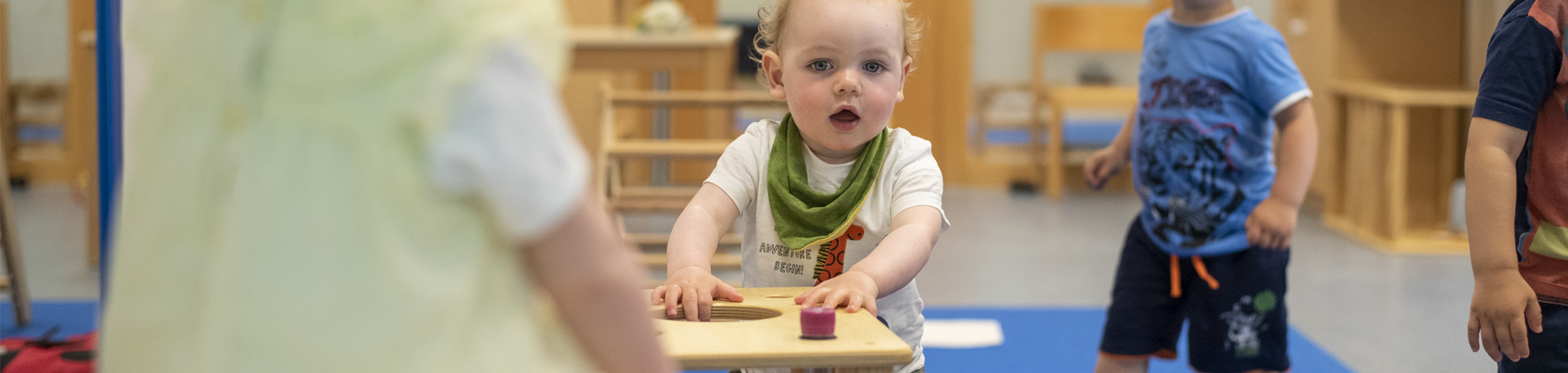 Nähe, Vertrauen, Umsorgen – eine gelungene Eltern-Kind-Bindung ist der beste Start ins Leben. Daran und an die Lebenssituation Ihres Kindes zu Hause knüpfen wir in der Krippe an. Liebevolle Zuwendung, großes Einfühlungsvermögen und hohe Fürsorgebereitschaft sind die Grundlagen unserer Arbeit mit den Kleinen. Uns geht es darum, dass sich Ihr Kind bei uns sicher und geborgen fühlt. So können Sie mit gutem Gefühl Ihrer Berufstätigkeit nachgehen.